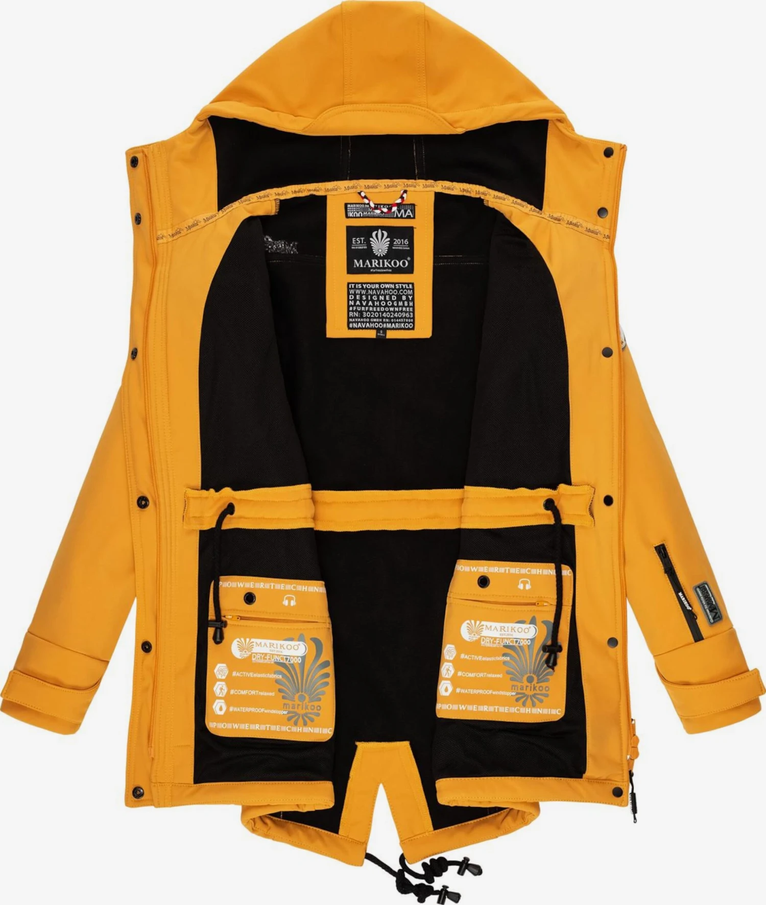 EffenSoftshellRegenjasDrukknopenCapuchon met opstaande kraagCapuchon met trekkoordVerborgen ritsVerlengd rugpandMouwzakBorstzakZakken aan de zijkantTrekkoord in de boordStevige stofVoelt zacht aanLicht gevoerdRitssluiting