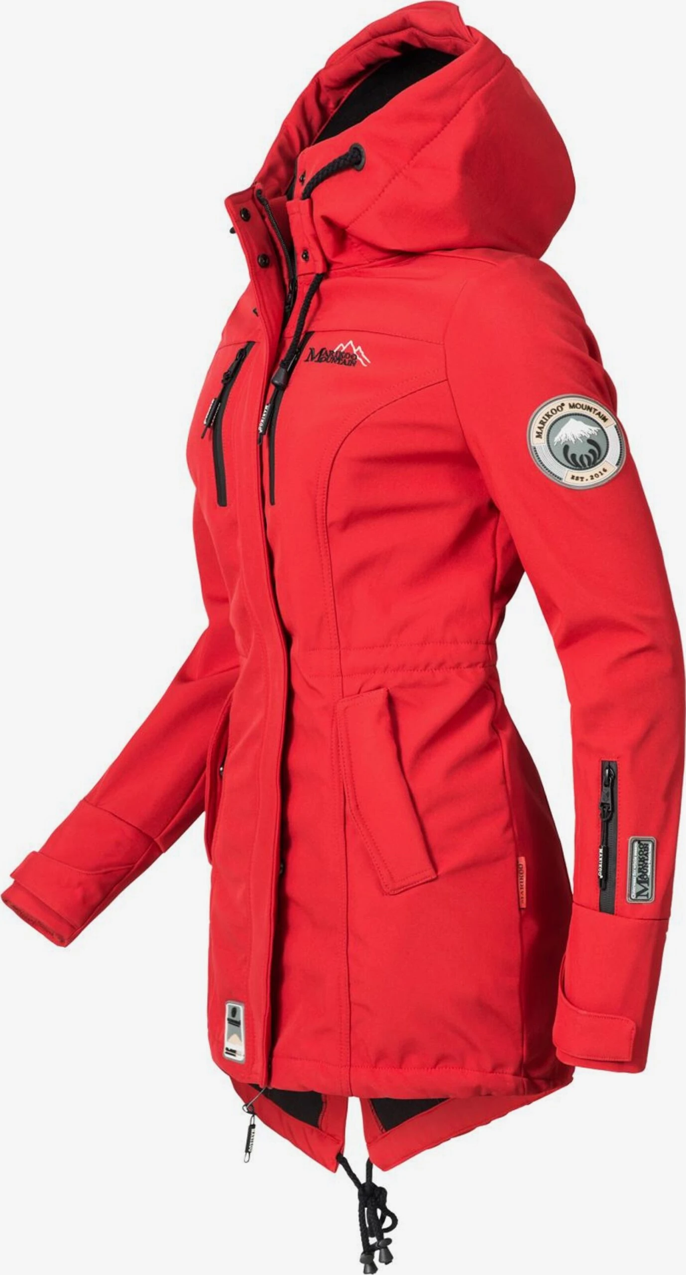 EffenSoftshellRegenjasContrast voeringMet capuchonTaillebandGetailleerd modelVerlengd rugpandOpzet-/flapzakAll-over patroonLabel patch/label flagLabel borduurwerkOp staal nadenWaterdichtLicht gevoerdRitssluiting