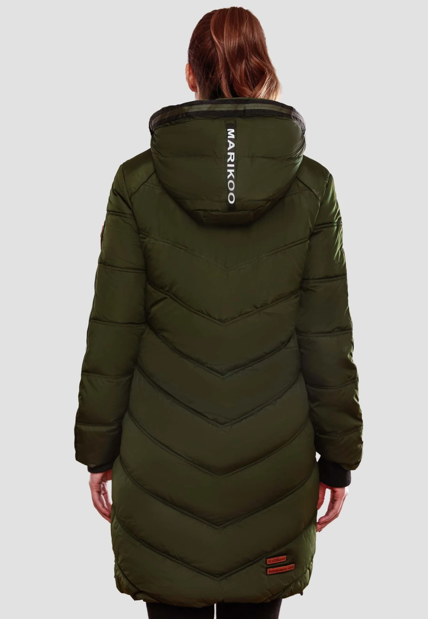 EffenGewatteerde jasCapuchon met trekkoordContrast voeringGeribd ceintuurtjeStaande kraagCombideelbare ritssluitingBinnenzakRitszakken aan de zijkantContrasterende insertsGlinsterendLabel patch/label flagStikselsWarm gevoerdRitssluiting