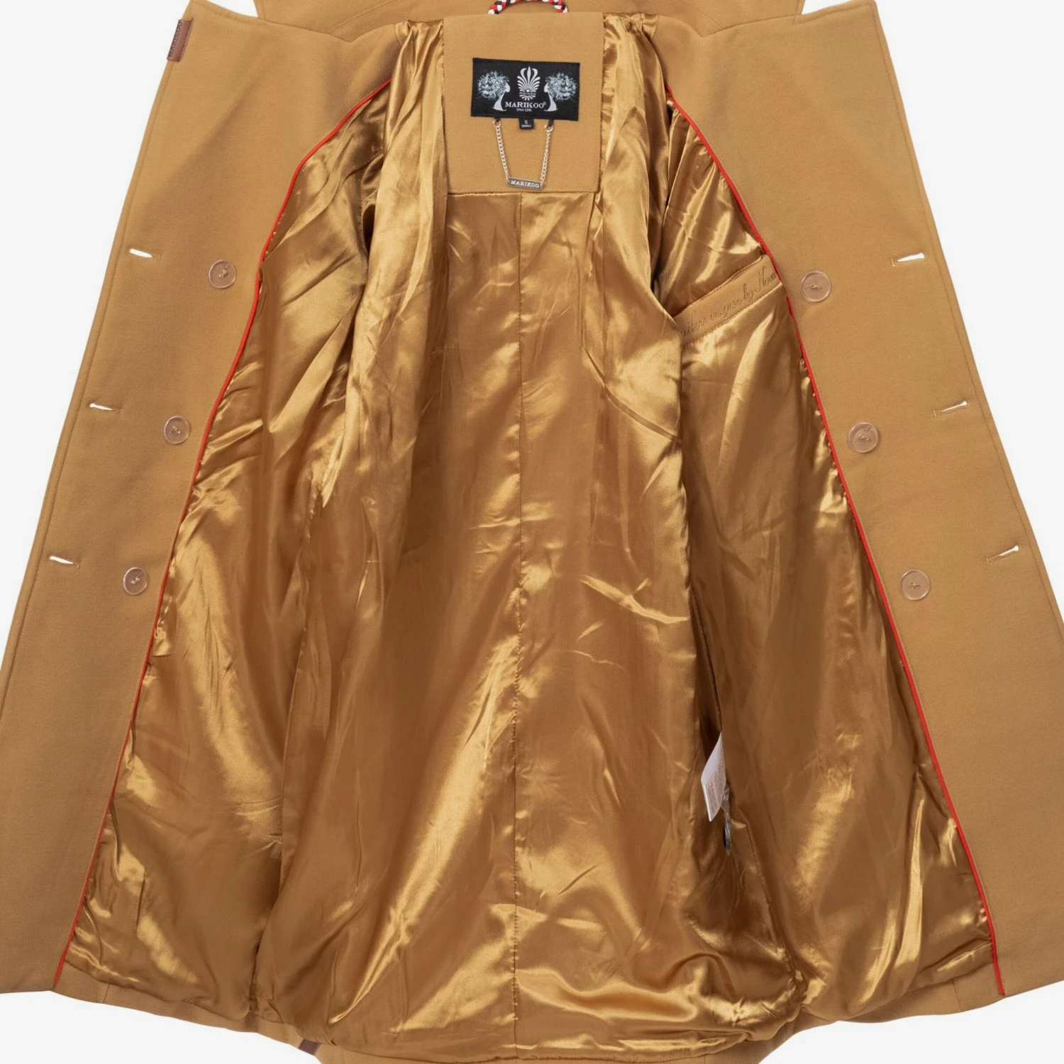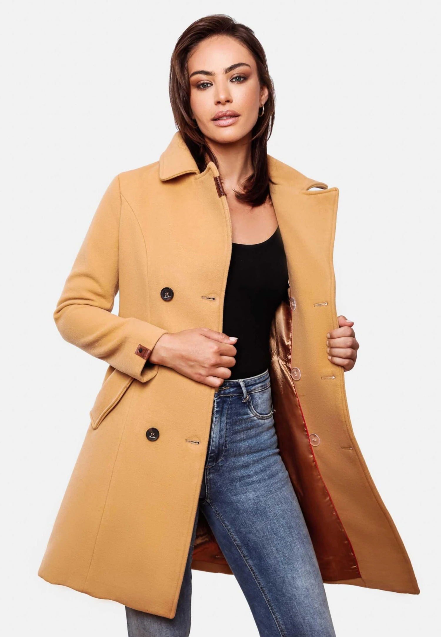 EffenKlassieke mantelRevers kraagGetailleerd modelOpgezette zakkenBinnenzakZakken aan de zijkantGlanzendVoelt zacht aanWarm gevoerdKnoopsluiting